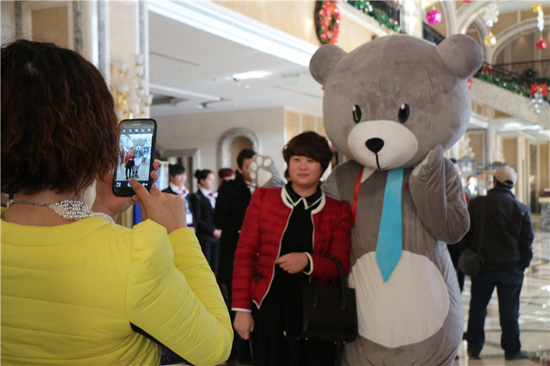 嘉宾与可爱的人偶熊合影